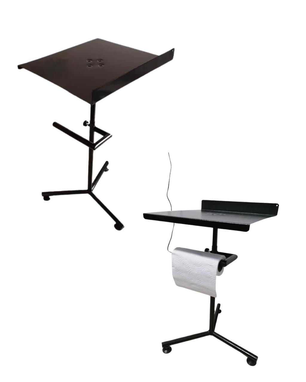 Incluye soporte lateral para rollo de papel, ideal para mantener tu espacio limpio y ordenado durante cada sesión. Además, cuenta con ruedas para un fácil desplazamiento dentro del estudio y sistema de ajuste de altura, adaptándose a diferentes estilos de trabajo.